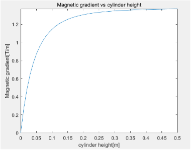 We find some interesting observations: at first, when the radius starts to increase, the magnetic gradient magnitude increased as well. However, after passing a certain radius, continuing to increase the radius of the cylinder can no longer increase the magnetic force, on the contrary, the force reduced. The reason behind is that when the surface area becomes too large the extra volume of the magnet actually providing more magnetic field at the sphere local, effectively reducing the magnetic field decay thus reducing the gradient. For a maximum magnetic force on the object, the optimal magnetic surface should have the radius roughly equal to the distance of attracting object. Of course, due to different design configurations it can be changed, but this optimal surface length can be the starting point for your magnet design.